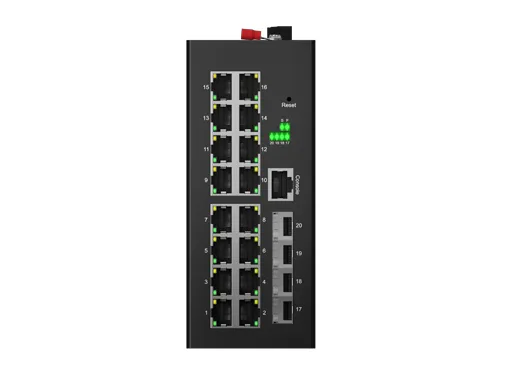مفتاح إيثرنت مُدار صناعيًا ، مع منفذ 16x1 0/48/rmbps للتفاوض التلقائي في j45 وواجهات 4xGigabit SFP. من خلال الاستفادة من تصميم دارة تبديد الحرارة بدون مروحة ، ونطاق درجة حرارة التشغيل الواسع ، ومستوى الحماية العالي ، فإنه يوفر أداءً متميزًا من الدرجة الصناعية ، وقدرة تحمل درجات الحرارة العالية والمنخفضة ، وقدرات الحماية من الصواعق. فهو يدمج بروتوكولات متنوعة ضرورية لوظائف التبديل والأمان ويدعم تقنية تحويل حلقة إيثرنت لحماية المجال العام (ERPS) ، مما يعزز إلى حد كبير مرونة بناء الشبكات مع تعزيز موثوقية وأمن الشبكات الصناعية. وهذا يجعلها مناسبة تمامًا لتلبية متطلبات النشر في تطبيقات مثل النقل بالسكك الحديدية والمدن الذكية والنقل الذكي والمراقبة الخارجية والبيئات القاسية الأخرى.